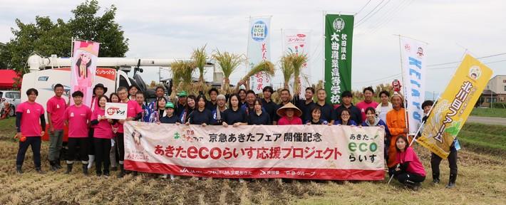9月10日、今年で17回目を迎える「京急あきたフェア」のキックオフイベント「あきたecoらいす」応援プロジェクトの稲刈りを、大仙市の圃場で行いました。