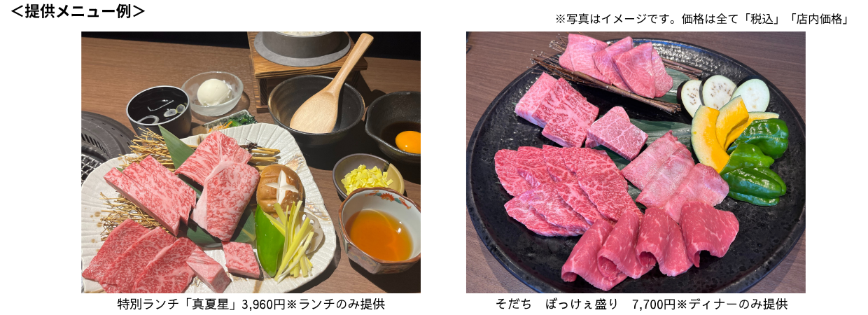 期間中は特別メニューとして、ランチではJAタウンオフィシャルサポーターの元乃木坂46秋元真夏さんが考案した「特別ランチ 真夏星」、ディナーではおかやま和牛肉の希少部位など様々な肉を食べ比べできる「そだち ぼっけぇ盛り」を提供します。